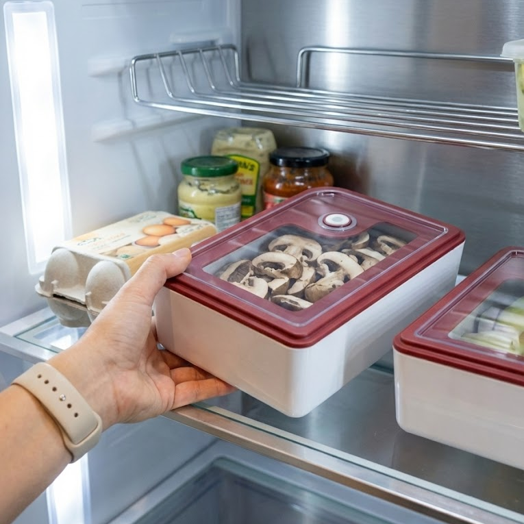 Das System besteht aus drei Komponenten, die perfekt zusammenspielen – um deine Lebensmittel länger frisch zu halten.