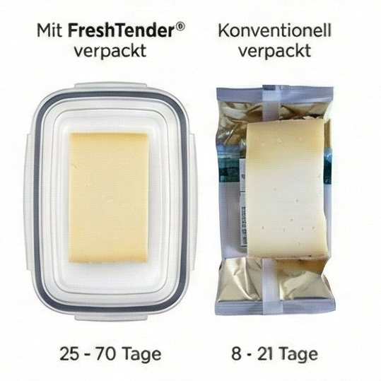 Bis zu 20× längere Haltbarkeit – dank Schutzatmosphäre.