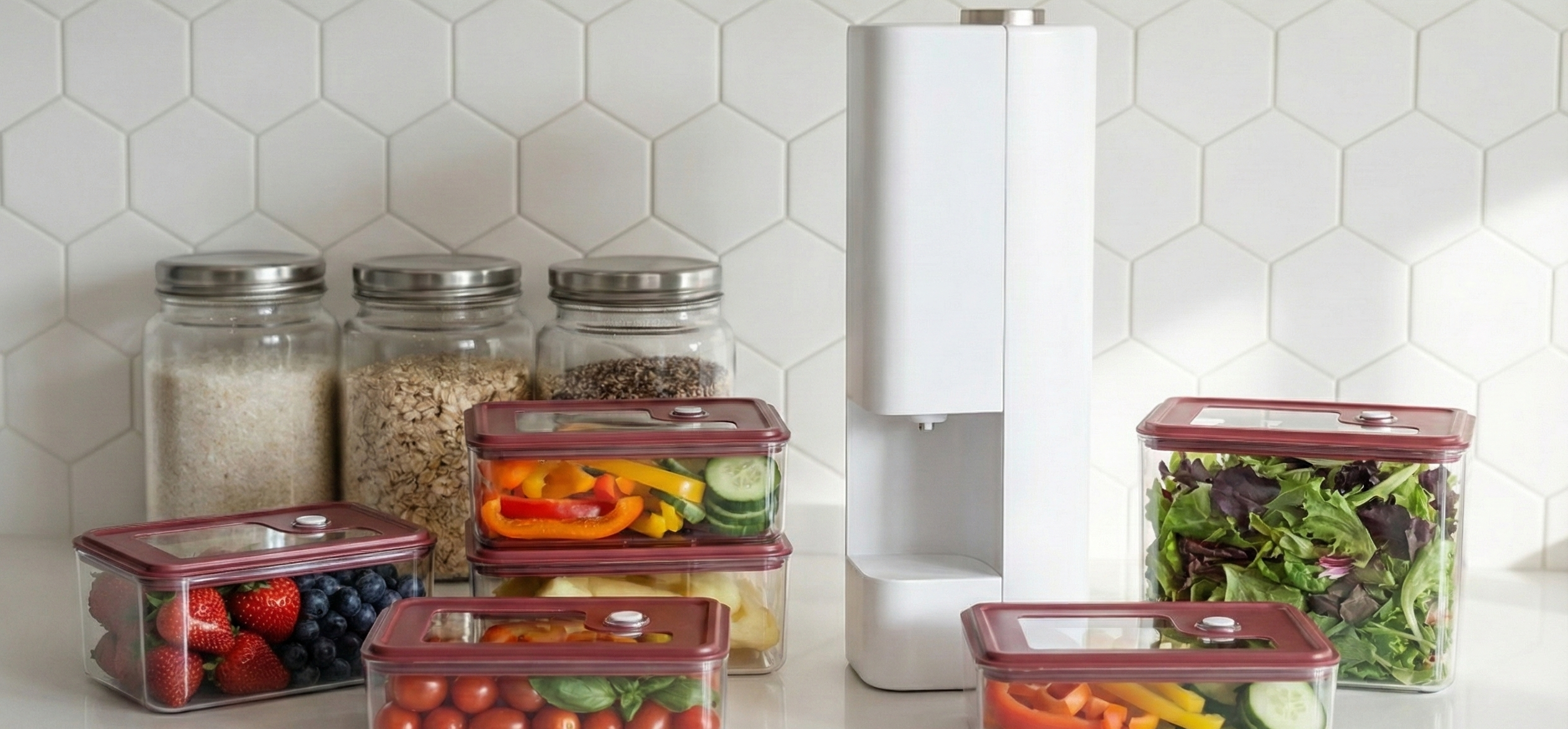 Dank der innovativen Schutzatmosphäre-Technologie (CO₂ & N₂) bewahren deine Lebensmittel länger Frische, Geschmack und Nährstoffe – ganz ohne Vakuum oder chemische Zusätze.